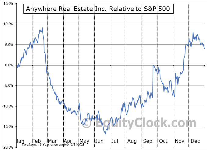Analysis of the Anywhere Real Estate Inc. (NYSE:HOUS) seasonal charts above shows that a Buy Date of November 13 and a Sell Date of February 18 has resulted in a geometric average return of 10.13% above the benchmark rate of the S&P 500 Total Return Index over the past 12 years. This seasonal timeframe has shown positive results compared to the benchmark in 10 of those periods. This is a very good rate of success and the return strongly outperforms the relative buy-and-hold performance of the stock over the past 12 years by an average of 38.89% per year.