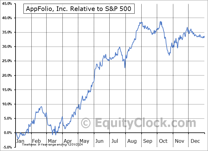 Analysis of the AppFolio, Inc. (NASD:APPF) seasonal charts above shows that a Buy Date of March 18 and a Sell Date of June 23 has resulted in a geometric average return of 21.66% above the benchmark rate of the S&P 500 Total Return Index over the past 9 years. This seasonal timeframe has shown positive results compared to the benchmark in 8 of those periods. This is a very good rate of success and the return outperforms the relative buy-and-hold performance of the stock over the past 9 years by an average of 1.56% per year.