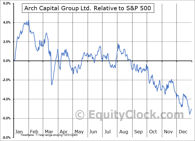 Analysis of the Arch Capital Group Ltd. (NASD:ACGLO) seasonal charts above shows that a Buy Date of February 15 and a Sell Date of May 24 has resulted in a geometric average return of 1.65% above the benchmark rate of the S&P 500 Total Return Index over the past 7 years. This seasonal timeframe has shown positive results compared to the benchmark in 5 of those periods. This is a good rate of success and the return strongly outperforms the relative buy-and-hold performance of the stock over the past 7 years by an average of 10.55% per year.
