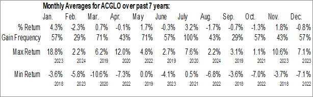 A word of caution: Only 7 years of data is available for shares of ACGLO, perhaps insufficient to create a seasonal profile that accurately gauges the seasonal tendencies influencing the investment. Ideally, while 20 years is preferred, at least 10 years of data is required to perform a seasonal analysis that is considered to be reliable for future seasonal periods.