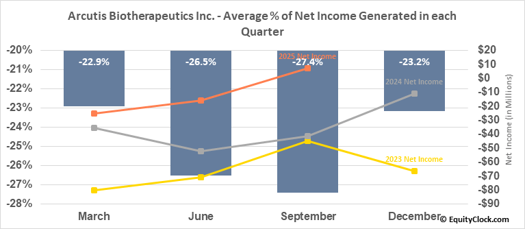 A word of caution: Only 4 years of data is available for shares of ARQT, perhaps insufficient to create a seasonal profile that accurately gauges the seasonal tendencies influencing the investment. Ideally, while 20 years is preferred, at least 10 years of data is required to perform a seasonal analysis that is considered to be reliable for future seasonal periods.