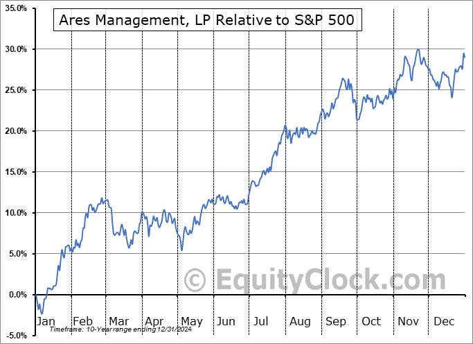 Analysis of the Ares Management, LP (NYSE:ARES) seasonal charts above shows that a Buy Date of December 20 and a Sell Date of March 31 has resulted in a geometric average return of 11.97% above the benchmark rate of the S&P 500 Total Return Index over the past 10 years. This seasonal timeframe has shown positive results compared to the benchmark in 10 of those periods. This is an excellent rate of success, but the return underperforms the relative buy-and-hold performance of the stock over the past 10 years by an average of 5.15% per year.