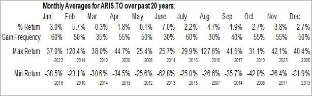To download ARIS.TO seasonal chart data, please log in or Subscribe.