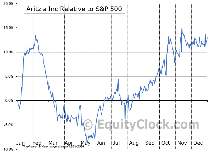 Analysis of the Aritzia Inc (OTCMKT:ATZAF) seasonal charts above shows that a Buy Date of August 22 and a Sell Date of January 1 has resulted in a geometric average return of 11.01% above the benchmark rate of the S&P 500 Total Return Index over the past 7 years. This seasonal timeframe has shown positive results compared to the benchmark in 7 of those periods. This is an excellent rate of success and the return strongly outperforms the relative buy-and-hold performance of the stock over the past 7 years by an average of 11.86% per year.