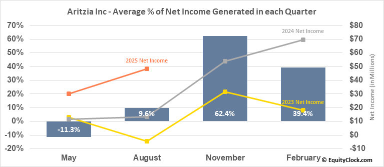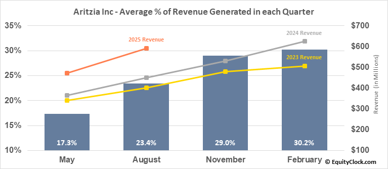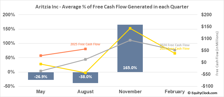 Aritzia Inc (OTCMKT:ATZAF) Seasonal Chart