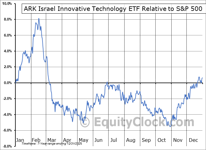 Analysis of the ARK Israel Innovative Technology ETF (AMEX:IZRL) seasonal charts above shows that a Buy Date of November 8 and a Sell Date of February 17 has resulted in a geometric average return of 6.15% above the benchmark rate of the S&P 500 Total Return Index over the past 7 years. This seasonal timeframe has shown positive results compared to the benchmark in 6 of those periods. This is a very good rate of success and the return strongly outperforms the relative buy-and-hold performance of the stock over the past 7 years by an average of 14.59% per year.