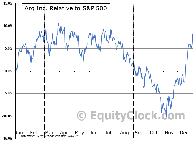 Analysis of the Arq Inc. (NASD:ARQ) seasonal charts above shows that a Buy Date of November 4 and a Sell Date of February 20 has resulted in a geometric average return of 18.09% above the benchmark rate of the S&P 500 Total Return Index over the past 20 years. This seasonal timeframe has shown positive results compared to the benchmark in 16 of those periods. This is a very good rate of success and the return strongly outperforms the relative buy-and-hold performance of the stock over the past 20 years by an average of 31.97% per year.