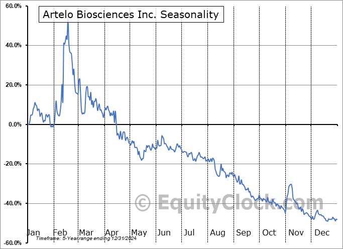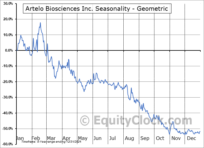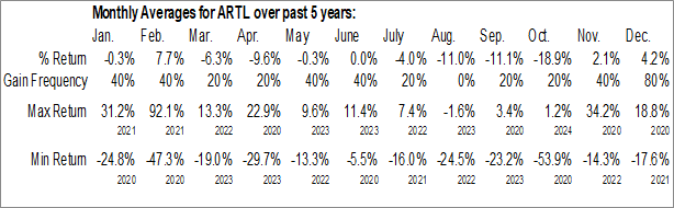 A word of caution: Only 5 years of data is available for shares of ARTL, perhaps insufficient to create a seasonal profile that accurately gauges the seasonal tendencies influencing the investment. Ideally, while 20 years is preferred, at least 10 years of data is required to perform a seasonal analysis that is considered to be reliable for future seasonal periods.