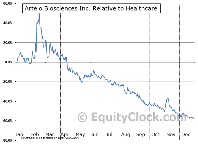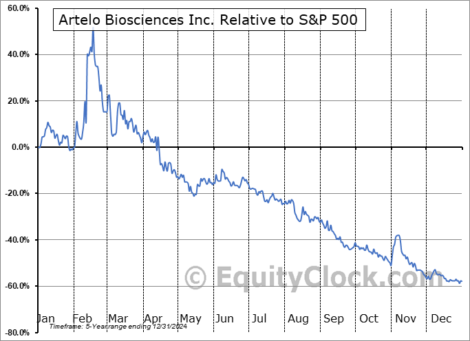 Analysis of the Artelo Biosciences Inc. (NASD:ARTL) seasonal charts above shows that a Buy Date of October 31 and a Sell Date of January 28 has resulted in a geometric average return of 0.55% above the benchmark rate of the S&P 500 Total Return Index over the past 5 years. This seasonal timeframe has shown positive results compared to the benchmark in 4 of those periods. This is a very good rate of success and the return strongly outperforms the relative buy-and-hold performance of the stock over the past 5 years by an average of 58.09% per year.