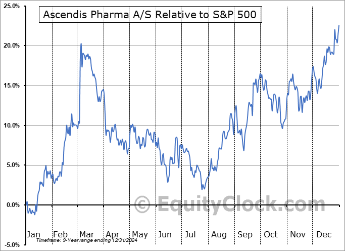 Analysis of the Ascendis Pharma A/S (NASD:ASND) seasonal charts above shows that a Buy Date of August 16 and a Sell Date of January 4 has resulted in a geometric average return of 14.66% above the benchmark rate of the S&P 500 Total Return Index over the past 9 years. This seasonal timeframe has shown positive results compared to the benchmark in 9 of those periods. This is an excellent rate of success and the return strongly outperforms the relative buy-and-hold performance of the stock over the past 9 years by an average of 5.25% per year.