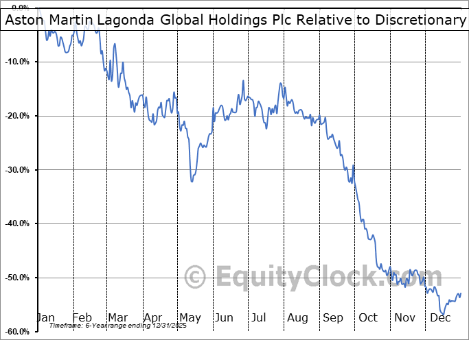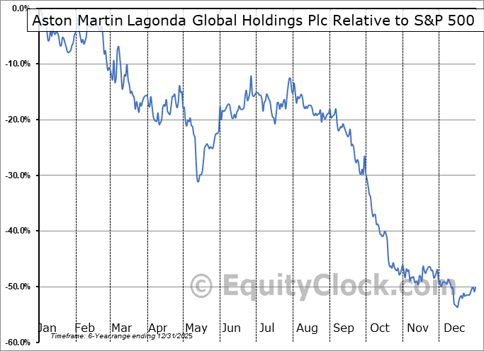Analysis of the Aston Martin Lagonda Global Holdings Plc (OTCMKT:ARGGY) seasonal charts above shows that a Buy Date of November 2 and a Sell Date of January 31 has resulted in a geometric average return of 17.88% above the benchmark rate of the S&P 500 Total Return Index over the past 5 years. This seasonal timeframe has shown positive results compared to the benchmark in 3 of those periods. This is a fair rate of success and the return strongly outperforms the relative buy-and-hold performance of the stock over the past 5 years by an average of 83.95% per year.