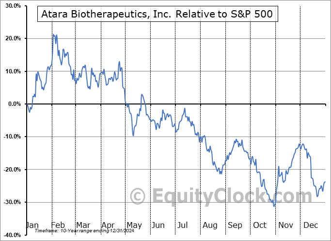 Analysis of the Atara Biotherapeutics, Inc. (NASD:ATRA) seasonal charts above shows that a Buy Date of October 31 and a Sell Date of February 3 has resulted in a geometric average return of 9.77% above the benchmark rate of the S&P 500 Total Return Index over the past 10 years. This seasonal timeframe has shown positive results compared to the benchmark in 7 of those periods. This is a good rate of success and the return strongly outperforms the relative buy-and-hold performance of the stock over the past 10 years by an average of 49.92% per year.