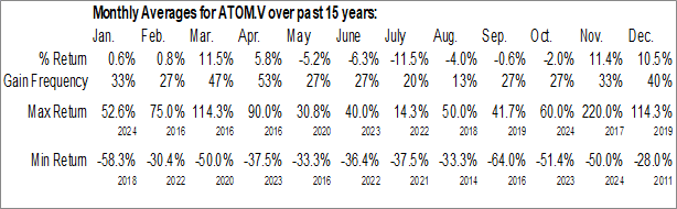 To download ATOM.V seasonal chart data, please log in or Subscribe.