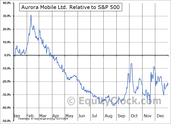 Analysis of the Aurora Mobile Ltd. (NASD:JG) seasonal charts above shows that a Buy Date of December 2 and a Sell Date of March 1 has resulted in a geometric average return of 24.02% above the benchmark rate of the S&P 500 Total Return Index over the past 6 years. This seasonal timeframe has shown positive results compared to the benchmark in 5 of those periods. This is a very good rate of success and the return strongly outperforms the relative buy-and-hold performance of the stock over the past 6 years by an average of 72.05% per year.