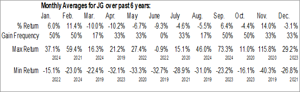 Aurora Mobile Ltd. (NASD:JG) Seasonal Chart