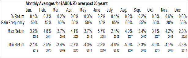 Australian Dollar to New Zealand Dollar (AUD-NZD) Seasonal Chart