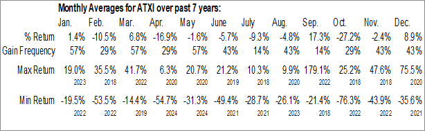 A word of caution: Only 7 years of data is available for shares of ATXI, perhaps insufficient to create a seasonal profile that accurately gauges the seasonal tendencies influencing the investment. Ideally, while 20 years is preferred, at least 10 years of data is required to perform a seasonal analysis that is considered to be reliable for future seasonal periods.