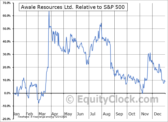 Analysis of the Awale Resources Ltd. (TSXV:ARIC.V) seasonal charts above shows that a Buy Date of March 2 and a Sell Date of May 24 has resulted in a geometric average return of 24.41% above the benchmark rate of the S&P 500 Total Return Index over the past 9 years. This seasonal timeframe has shown positive results compared to the benchmark in 8 of those periods. This is a very good rate of success and the return strongly outperforms the relative buy-and-hold performance of the stock over the past 9 years by an average of 43.99% per year.
