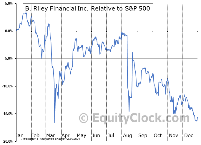 Analysis of the B. Riley Financial Inc. (NASD:RILYN) seasonal charts above shows that a Buy Date of March 18 and a Sell Date of June 11 has resulted in a geometric average return of 17.12% above the benchmark rate of the S&P 500 Total Return Index over the past 5 years. This seasonal timeframe has shown positive results compared to the benchmark in 4 of those periods. This is a very good rate of success and the return strongly outperforms the relative buy-and-hold performance of the stock over the past 5 years by an average of 35.73% per year.