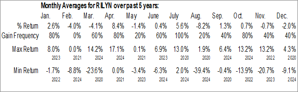 A word of caution: Only 5 years of data is available for shares of RILYN, perhaps insufficient to create a seasonal profile that accurately gauges the seasonal tendencies influencing the investment. Ideally, while 20 years is preferred, at least 10 years of data is required to perform a seasonal analysis that is considered to be reliable for future seasonal periods.