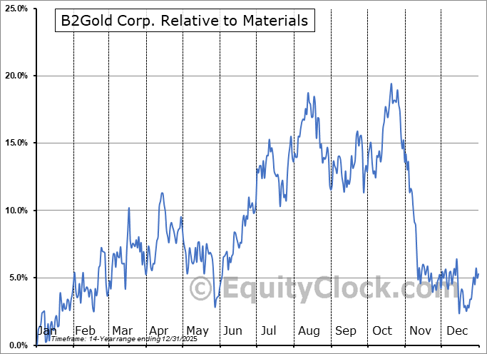 Analysis of the B2Gold Corp. (NYSE:BTG) seasonal charts above shows that a Buy Date of December 15 and a Sell Date of March 25 has resulted in a geometric average return of 7.82% above the benchmark rate of the S&P 500 Total Return Index over the past 13 years. This seasonal timeframe has shown positive results compared to the benchmark in 10 of those periods. This is a good rate of success and the return strongly outperforms the relative buy-and-hold performance of the stock over the past 13 years by an average of 20.33% per year.