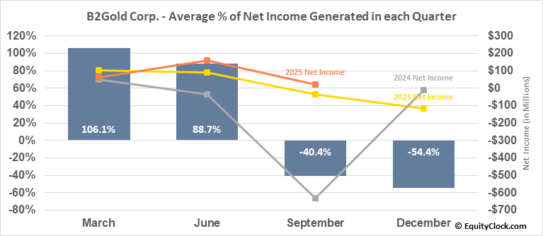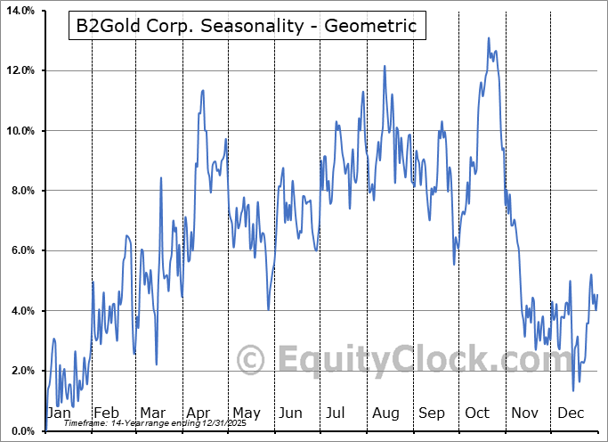 B2Gold Corp. (NYSE:BTG) Seasonal Chart