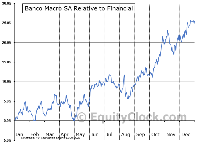 Analysis of the Banco Macro SA (NYSE:BMA) seasonal charts above shows that a Buy Date of November 30 and a Sell Date of February 18 has resulted in a geometric average return of 5.72% above the benchmark rate of the S&P 500 Total Return Index over the past 18 years. This seasonal timeframe has shown positive results compared to the benchmark in 14 of those periods. This is a good rate of success and the return strongly outperforms the relative buy-and-hold performance of the stock over the past 18 years by an average of 6.13% per year.