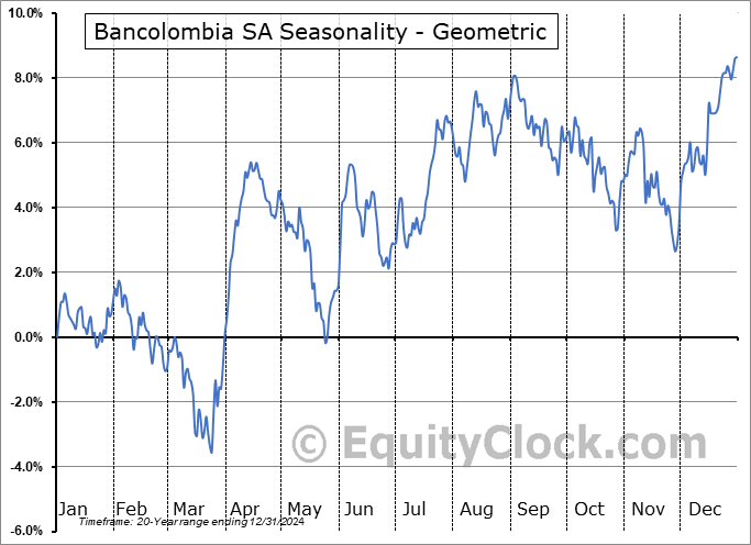 Bancolombia SA (NYSE:CIB) Seasonal Chart