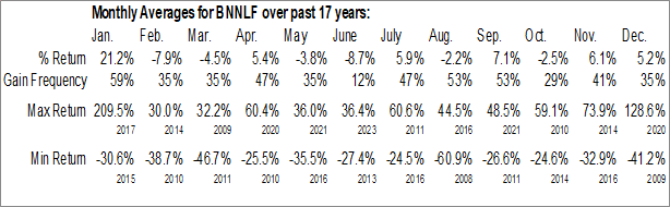 Bannerman Energy Ltd. (OTCMKT:BNNLF) Seasonal Chart