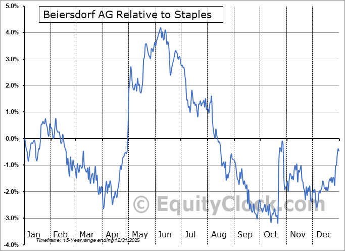The seasonal timeframe is Inline with the period of seasonal strength for the Consumer Staples sector, which runs from April 25 to November 23. The seasonal chart for the broad sector is available via the following link: Consumer Staples Sector Seasonal Chart.