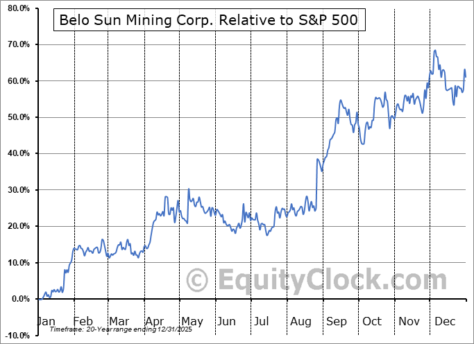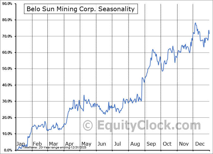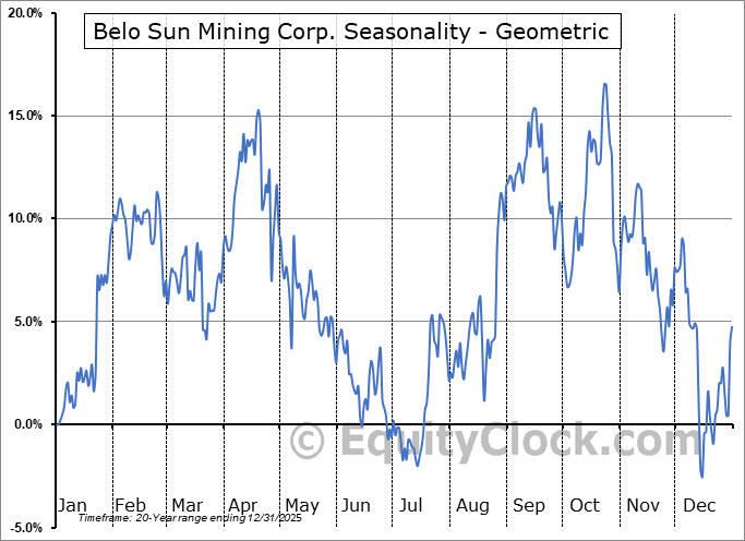 Analysis of the Belo Sun Mining Corp. (OTCMKT:BSXGF) seasonal charts above shows that a Buy Date of July 14 and a Sell Date of October 24 has resulted in a geometric average return of 17.28% above the benchmark rate of the S&P 500 Total Return Index over the past 20 years. This seasonal timeframe has shown positive results compared to the benchmark in 15 of those periods. This is a good rate of success and the return strongly outperforms the relative buy-and-hold performance of the stock over the past 20 years by an average of 22.67% per year.
