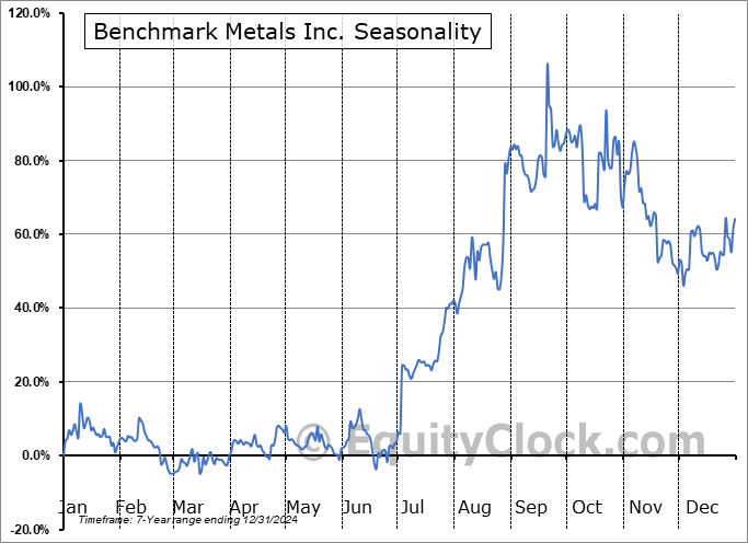 Benchmark Metals Inc. (OTCMKT:CYRTF) Seasonal Chart