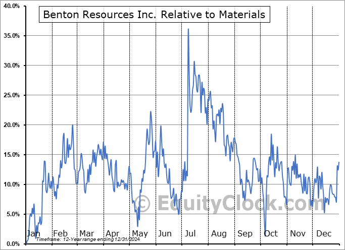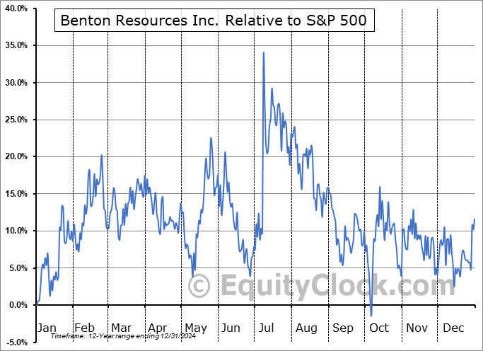 Analysis of the Benton Resources Inc. (TSXV:BEX.V) seasonal charts above shows that a Buy Date of November 15 and a Sell Date of February 18 has resulted in a geometric average return of 19.85% above the benchmark rate of the S&P 500 Total Return Index over the past 12 years. This seasonal timeframe has shown positive results compared to the benchmark in 11 of those periods. This is an excellent rate of success and the return strongly outperforms the relative buy-and-hold performance of the stock over the past 12 years by an average of 34.04% per year.