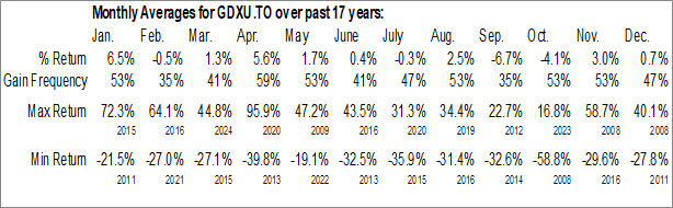 To download GDXU.TO seasonal chart data, please log in or Subscribe.