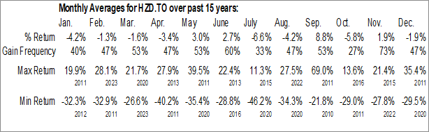 To download HZD.TO seasonal chart data, please log in or Subscribe.