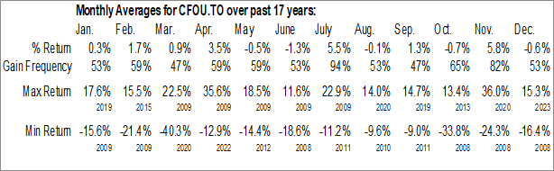 To download CFOU.TO seasonal chart data, please log in or Subscribe.