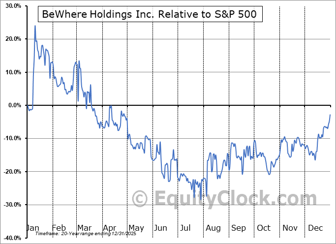 Analysis of the BeWhere Holdings Inc. (TSXV:BEW.V) seasonal charts above shows that a Buy Date of August 17 and a Sell Date of January 10 has resulted in a geometric average return of 14.72% above the benchmark rate of the S&P 500 Total Return Index over the past 20 years. This seasonal timeframe has shown positive results compared to the benchmark in 14 of those periods. This is a good rate of success and the return strongly outperforms the relative buy-and-hold performance of the stock over the past 20 years by an average of 40.91% per year.