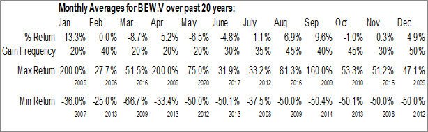 To download BEW.V seasonal chart data, please log in or Subscribe.