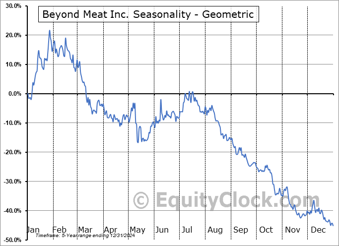 A word of caution: Only 5 years of data is available for shares of BYND, perhaps insufficient to create a seasonal profile that accurately gauges the seasonal tendencies influencing the investment. Ideally, while 20 years is preferred, at least 10 years of data is required to perform a seasonal analysis that is considered to be reliable for future seasonal periods.