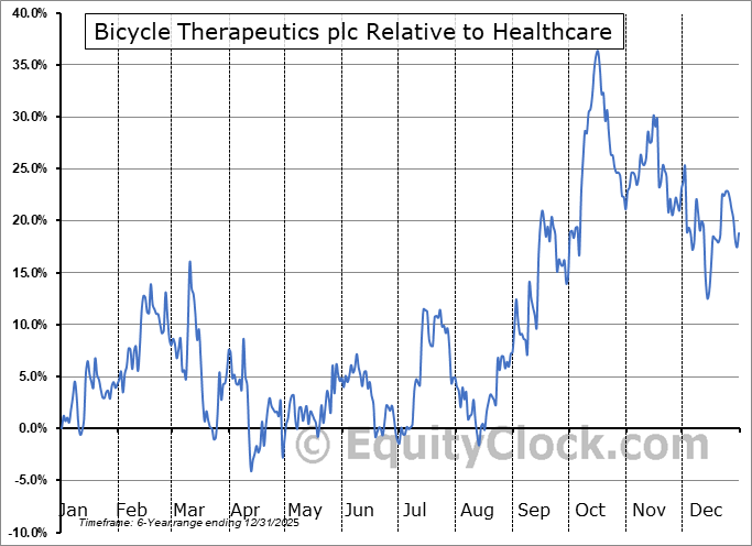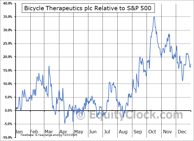 Analysis of the Bicycle Therapeutics plc (NASD:BCYC) seasonal charts above shows that a Buy Date of July 12 and a Sell Date of October 9 has resulted in a geometric average return of 11.96% above the benchmark rate of the S&P 500 Total Return Index over the past 6 years. This seasonal timeframe has shown positive results compared to the benchmark in 6 of those periods. This is an excellent rate of success and the return strongly outperforms the relative buy-and-hold performance of the stock over the past 6 years by an average of 29.74% per year.