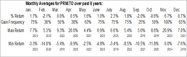 To download PRM.TO seasonal chart data, please log in or Subscribe.