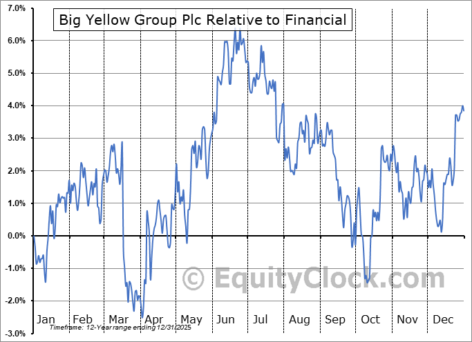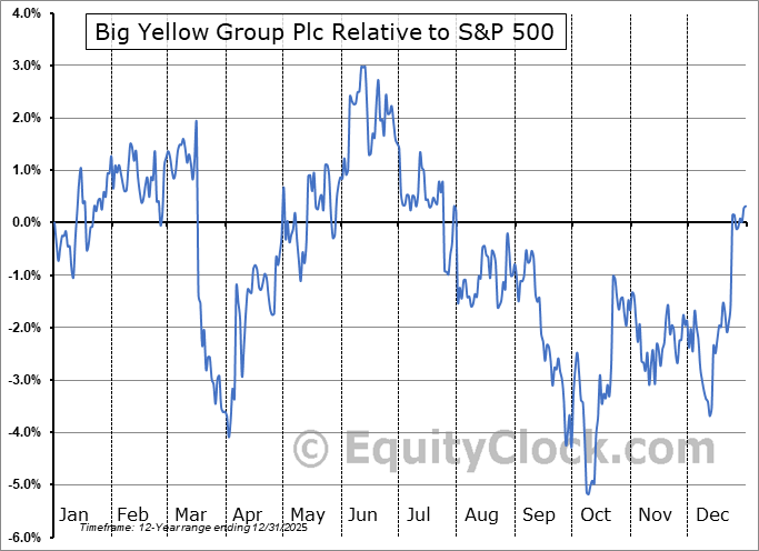 Analysis of the Big Yellow Group Plc (OTCMKT:BYLOF) seasonal charts above shows that a Buy Date of April 5 and a Sell Date of June 26 has resulted in a geometric average return of 4.08% above the benchmark rate of the S&P 500 Total Return Index over the past 15 years. This seasonal timeframe has shown positive results compared to the benchmark in 12 of those periods. This is a very good rate of success and the return strongly outperforms the relative buy-and-hold performance of the stock over the past 15 years by an average of 7.38% per year.