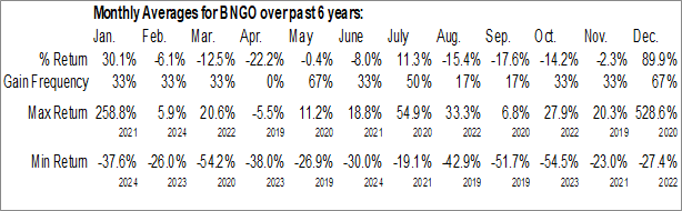 To download BNGO seasonal chart data, please log in or Subscribe.