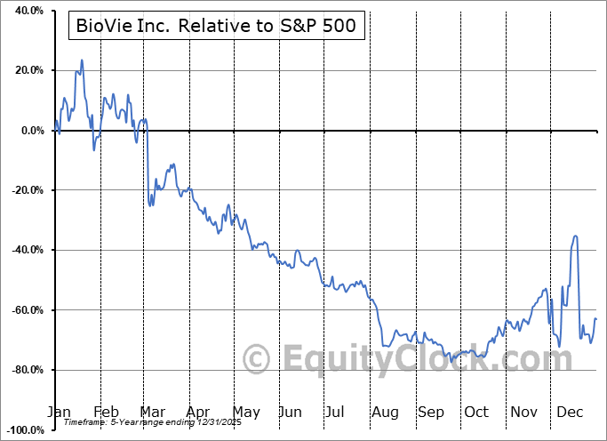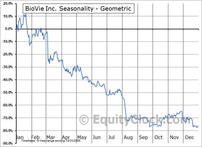 Analysis of the BioVie Inc. (NASD:BIVI) seasonal charts above shows that a Buy Date of December 3 and a Sell Date of March 1 has resulted in a geometric average return of 168.35% above the benchmark rate of the S&P 500 Total Return Index over the past 5 years. This seasonal timeframe has shown positive results compared to the benchmark in 4 of those periods. This is a very good rate of success and the return strongly outperforms the relative buy-and-hold performance of the stock over the past 5 years by an average of 219.06% per year.
