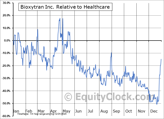 Analysis of the Bioxytran Inc. (OTCMKT:BIXT) seasonal charts above shows that a Buy Date of January 24 and a Sell Date of April 15 has resulted in a geometric average return of 32.37% above the benchmark rate of the S&P 500 Total Return Index over the past 14 years. This seasonal timeframe has shown positive results compared to the benchmark in 11 of those periods. This is a good rate of success and the return strongly outperforms the relative buy-and-hold performance of the stock over the past 14 years by an average of 80.58% per year.
