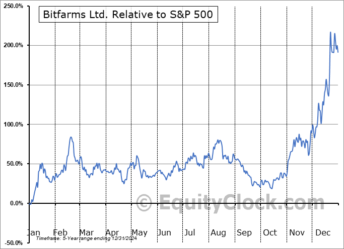 Analysis of the Bitfarms Ltd. (TSE:BITF.TO) seasonal charts above shows that a Buy Date of October 14 and a Sell Date of February 18 has resulted in a geometric average return of 131.54% above the benchmark rate of the S&P 500 Total Return Index over the past 5 years. This seasonal timeframe has shown positive results compared to the benchmark in 4 of those periods. This is a very good rate of success and the return strongly outperforms the relative buy-and-hold performance of the stock over the past 5 years by an average of 114.28% per year.