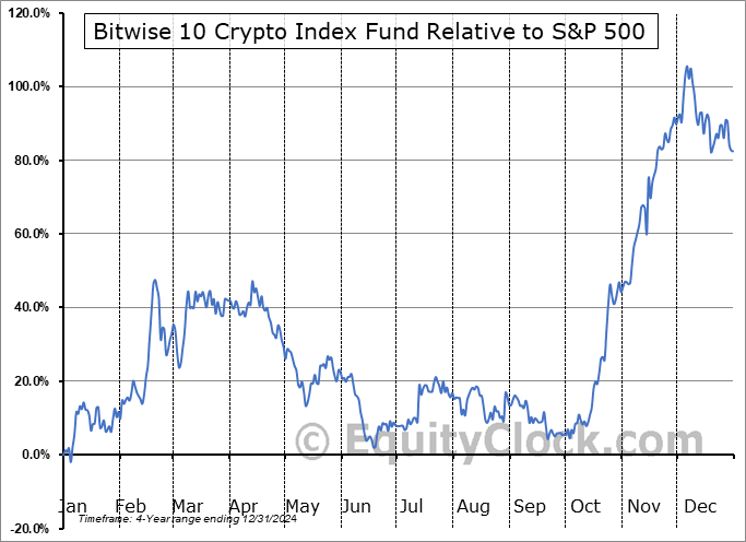 Analysis of the Bitwise 10 Crypto Index Fund (OTCMKT:BITW) seasonal charts above shows that a Buy Date of January 24 and a Sell Date of April 15 has resulted in a geometric average return of 34.06% above the benchmark rate of the S&P 500 Total Return Index over the past 4 years. This seasonal timeframe has shown positive results compared to the benchmark in 4 of those periods. This is an excellent rate of success and the return strongly outperforms the relative buy-and-hold performance of the stock over the past 4 years by an average of 45.97% per year.
