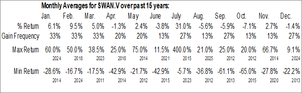 To download SWAN.V seasonal chart data, please log in or Subscribe.