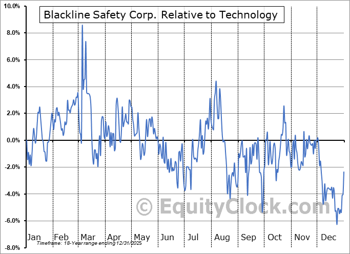 Analysis of the Blackline Safety Corp. (TSE:BLN.TO) seasonal charts above shows that a Buy Date of October 5 and a Sell Date of February 24 has resulted in a geometric average return of 7.2% above the benchmark rate of the S&P 500 Total Return Index over the past 17 years. This seasonal timeframe has shown positive results compared to the benchmark in 13 of those periods. This is a good rate of success and the return strongly outperforms the relative buy-and-hold performance of the stock over the past 17 years by an average of 10.99% per year.