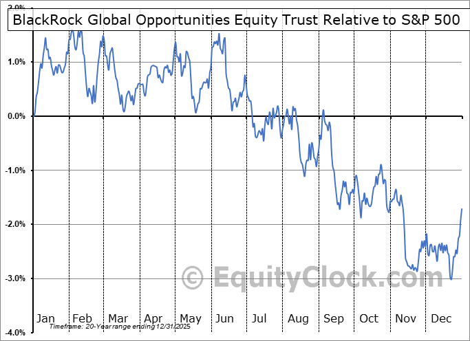 Analysis of the BlackRock Global Opportunities Equity Trust (NYSE:BOE) seasonal charts above shows that a Buy Date of December 13 and a Sell Date of March 4 has resulted in a geometric average return of 1.27% above the benchmark rate of the S&P 500 Total Return Index over the past 20 years. This seasonal timeframe has shown positive results compared to the benchmark in 15 of those periods. This is a good rate of success and the return strongly outperforms the relative buy-and-hold performance of the stock over the past 20 years by an average of 5.27% per year.